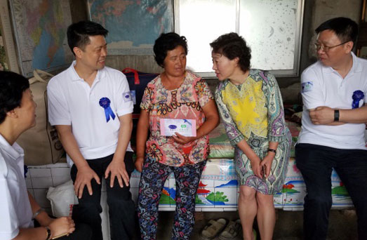 本次活动,中国妇女发展基金会项目负责人家庭安全发展专项基金办公室主任祝燕春、中国健康教育中心/医药期刊分社秘书长林琳、大商集团副总裁古勇、当地妇联领导与安莉芳 “蓝丝带行动”志愿者对当地贫困家庭进行慰问,希望为受助对象带去切实的关爱和帮助。